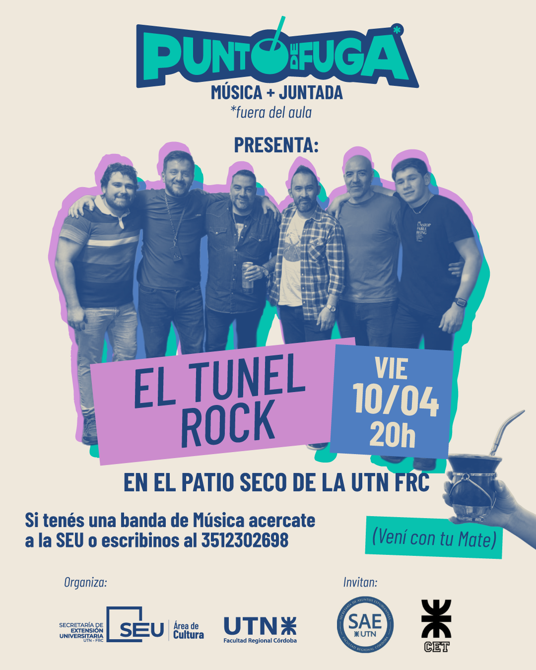 La actividad invita a estudiantes, egresados, docentes y nodocentes a compartir un espacio de encuentro donde la música y la vida universitaria se cruzan en un ambiente distendido. La propuesta es simple: traer el mate o una bebida sin alcohol (el consumo de bebidas alcohólicas esta prohibido en toda la facultad), encontrarse con la comunidad UTN y disfrutar de una noche de rock en el corazón de la facultad.