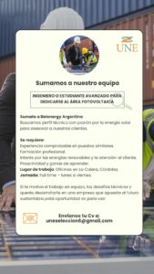 Si te motiva el trabajo en equipo, los desafíos técnicos y querés desarrollarte en una empresa que apuesta al futuro sustentable ¡esta oportunidad es para vos!