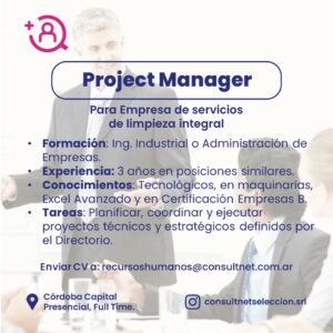 - Conocimientos: Tecnológicos, en maquinarias, Excel Avanzado y en Certificación Empresas B.